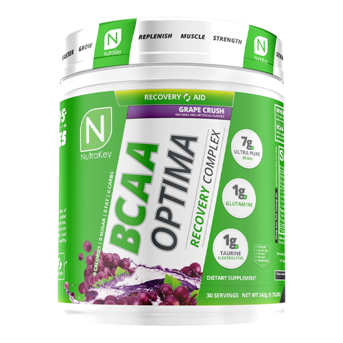 NutraKey BCAA Optima Post Workout Recovery Complex, No Sugar, No Carb, Recovery Aid, Grape