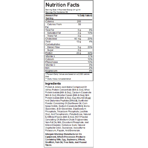 To enhance this ultra-premium blend, SYNTHA-6 has also been fortified with BCAA’s, muscle sparring glutamine peptides, Aminogen for greater digestion, heart-healthy meduim chain triglycerides (MCTs) and essential fatty acids, along with 5 grams of fiber for improved digestion and increased nutrient uptake. Not only does SYNTHA-6 produce ‘ridiculously’ delicious protein shakes, it provides you with a healthy meal, perfect for your busy lifestyle.