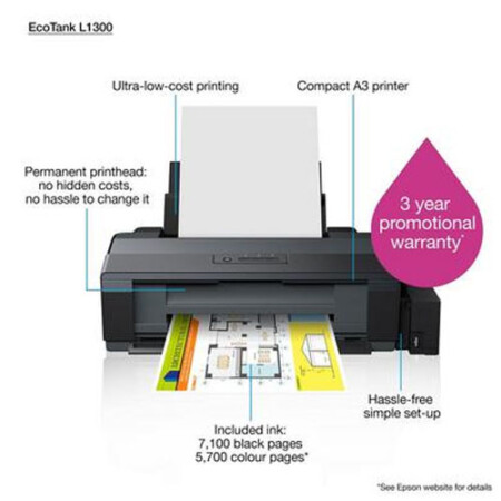 With the L1300, you have the option to print larger documents up to A3+ size. This opens up possibilities for superior presentations of detailed CAD drawings, floor plans, business reports and charts that go beyond the ability of typical A4 printers.