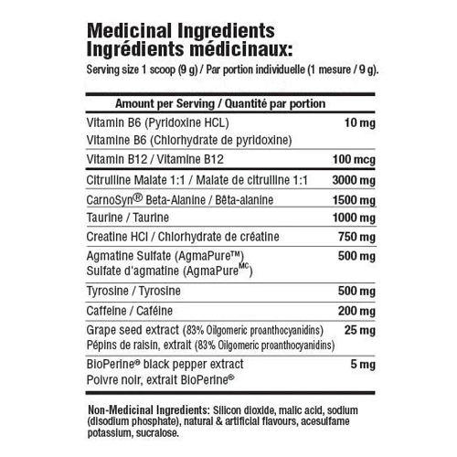 Fully Loaded powerful pre-workout formula with scientifically researched ingredients in effective doses, for Extreme Energy, Hard Muscle Gains and Massive Muscle Pumps! 3000 mg of CITRULLINE MALATE for superior muscle pumps! 1500 mg of BETA ALANINE for increased strength & endurance! 750 mg of CREATINE HCL for greater recovery & muscle growth! 500 mg of AGMATINE SULFATE for explosive power & performance! 500 mg of TYROSINE for mood & adrenal function support! 1000 mg of TAURINE for improved focus & alertness! 200 mg of CAFFEINE for longer lasting energy!