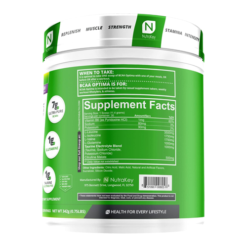 NutraKey BCAA Optima Post Workout Recovery Complex, No Sugar, No Carb, Recovery Aid, Grape